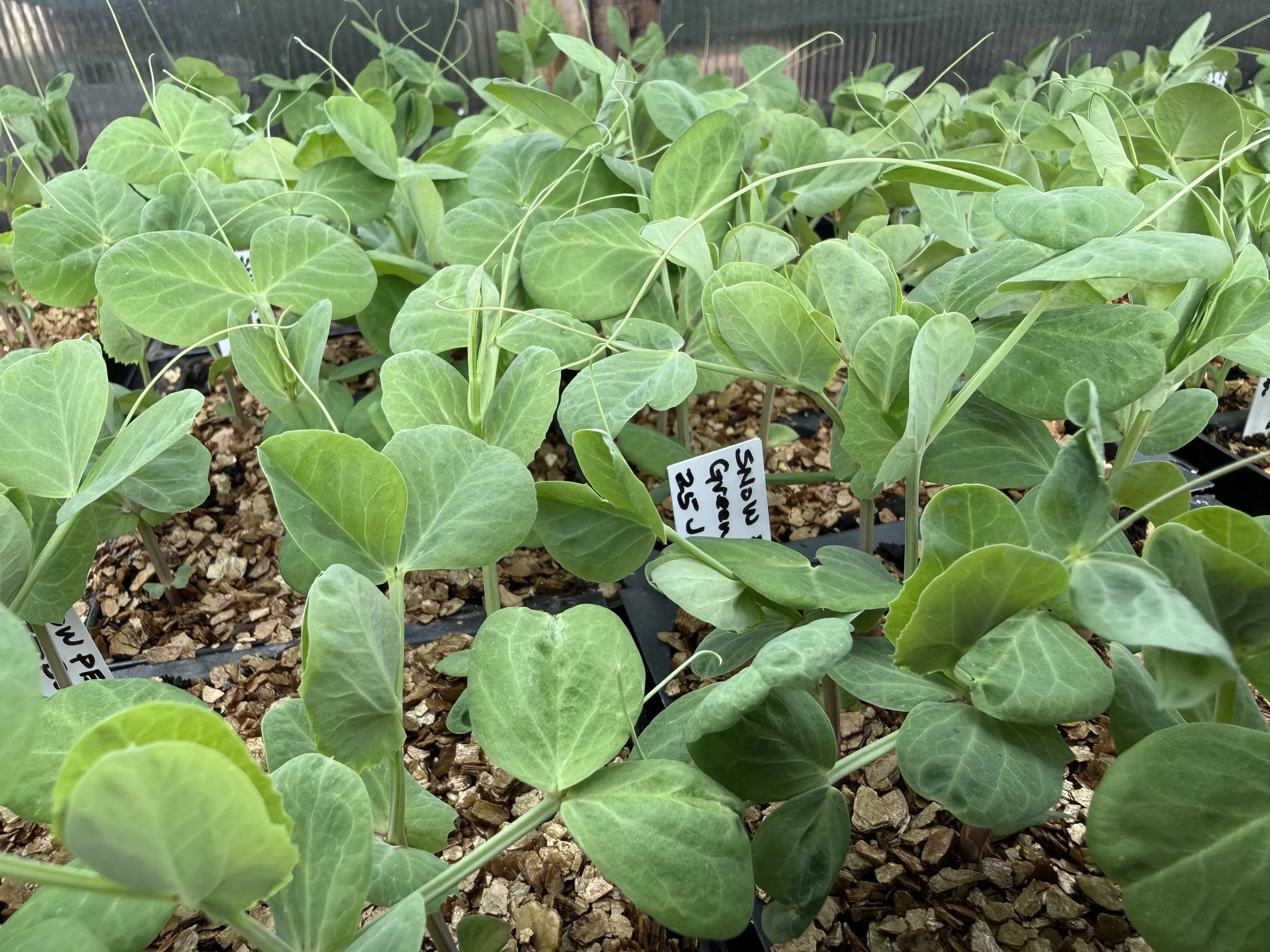 Snow pea ‘Green Beauty’ in the greenhouse on 6 February.