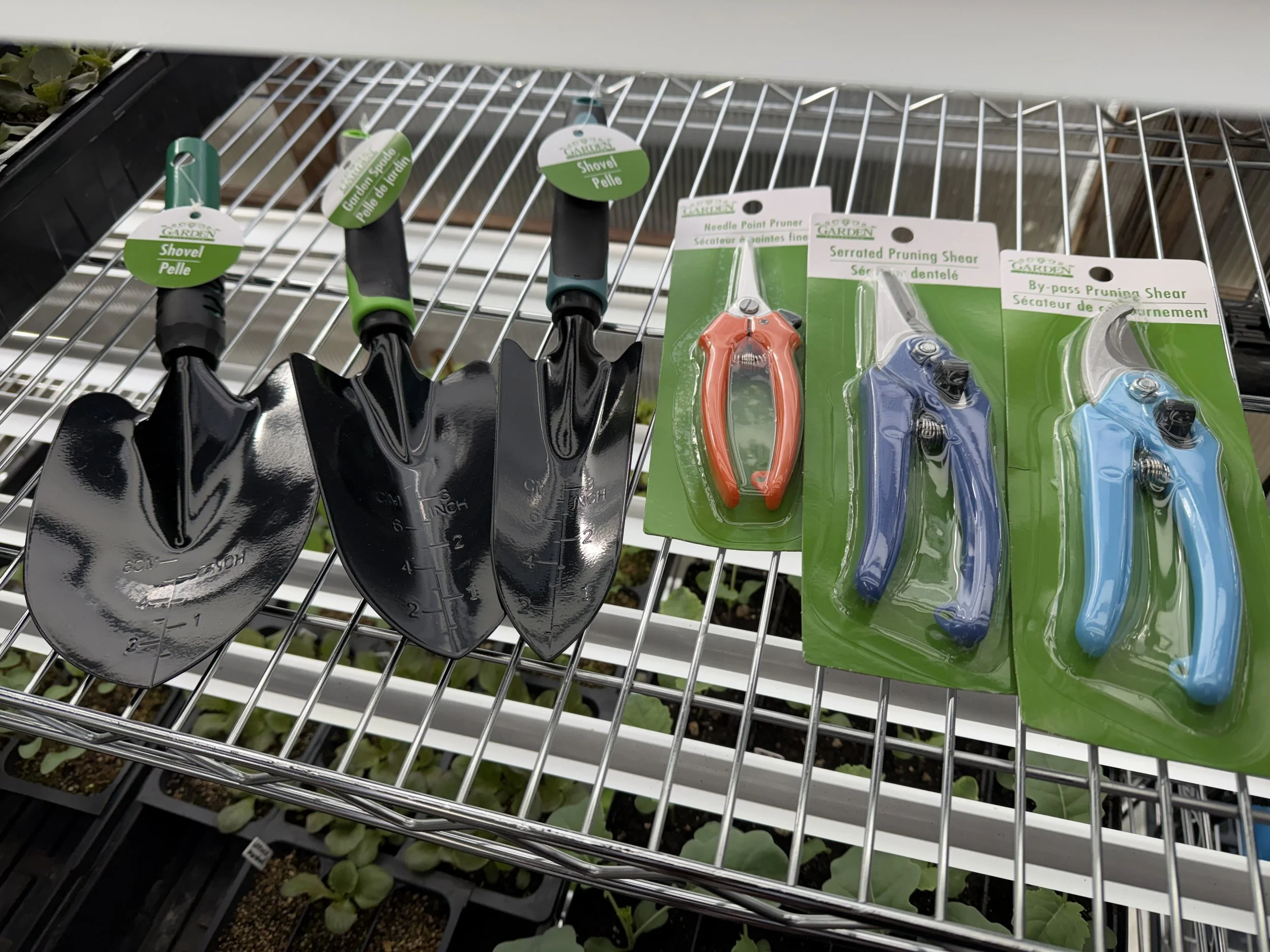TOOLS! (See photo below.) Last year I purchased a few garden tools from Dollar Tree and was surprisingly pleased with them, particularly the trowels because of their very comfortable handle, their size, and the thickness of the metal (not too thick and not too thin). I also got one each of the Needle Point Pruner and Serrated Pruning Shear. They are good for light duty clipping jobs which is the majority in my garden. This year I got the full line which includes a small shovel (to which you must attach a handle about 7/8 inch in diameter), the standard trowel, the narrow trowel, the two pruners already mentioned plus the By-pass Pruning Shear. Each of these tools was only $1.50, so the total for the six tools in the photo is $9.00! Of course, since I’ve been gardening so long, I have many tools, many of them very high end and expensive. I actually like the Dollar Tree trowels best because of those comfortable handles. If you decide to get any of these, don’t delay as they don’t seem to stock that many. (After a year of use, one of the trowels has lost a little paint, but I don’t consider that a serious flaw since I can easily repaint or just oil the bare metal.)