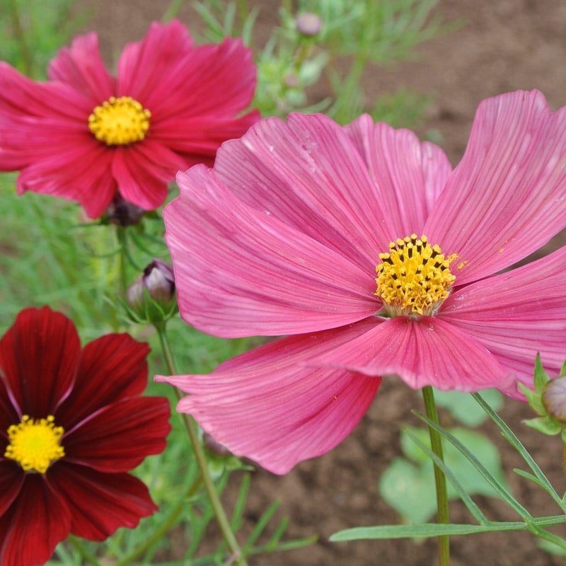 A dynamic flower that changes color as it matures, from a deep wine maroon to a muted rose, with many shades in between. Single flowers with yellow centers appear atop ferny foliage. Upright plants grow to about 3 ½ feet, making Rubenza shorter than most cosmos so they do not need staking. Begins flowering early and continuously until frost, long stems make for a good cut flower. Winner of a Fleuroselect Novelty Award in Europe, but humans aren’t the only ones to appreciate these lovely flowers; many beneficial insects enjoy them while in bloom and birds happily munch on the seeds. This is one we want to grow every year. (Adaptive Seeds)